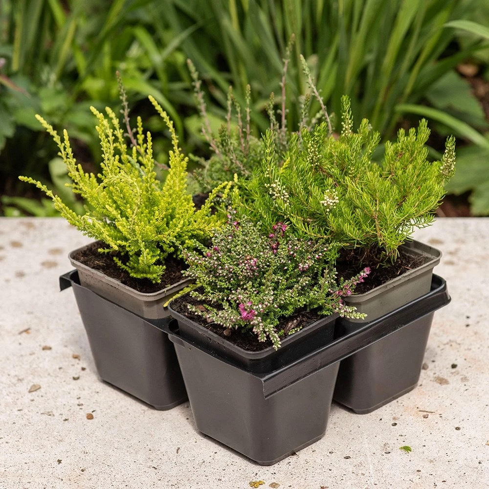 A delightful mix of four hardy heather varieties, specially chosen for their long-lasting and colourful flowers. While we can’t specify the exact varieties received, this starter pack contains a diverse blend of heathers sure to enhance your garden. Grown in acidic soil, these adaptable evergreen shrubs are low maintenance once established, and you’ll enjoy cheerful blooms in shades of purple, pink, and/or white that appear at different times from late summer through spring. The small leaves also provide interest, with hues ranging from green to grey to reddish-orange. Plant these tough yet delicate beauties together to create a sweeping carpet of texture and colour that look wonderful in beds, borders, rock gardens, and containers.